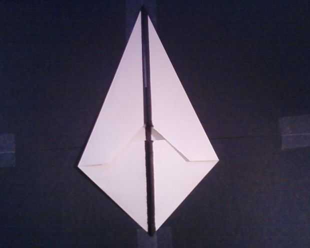 8. hacer otro de estos con los otros dos triángulos. Ahora debe tener dos. Uno de ellos, usted puede dejar de lado. Se utilizará como la envoltura para el kunai. El otro se utilizará para la hoja.