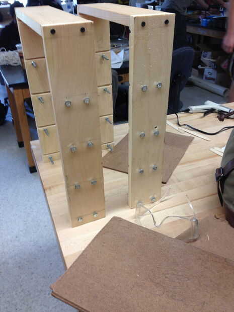 Unir las 2 piezas largo y vas a taladrar un agujero para que las dos columnas pueden permanecer estables cuando la vertical.