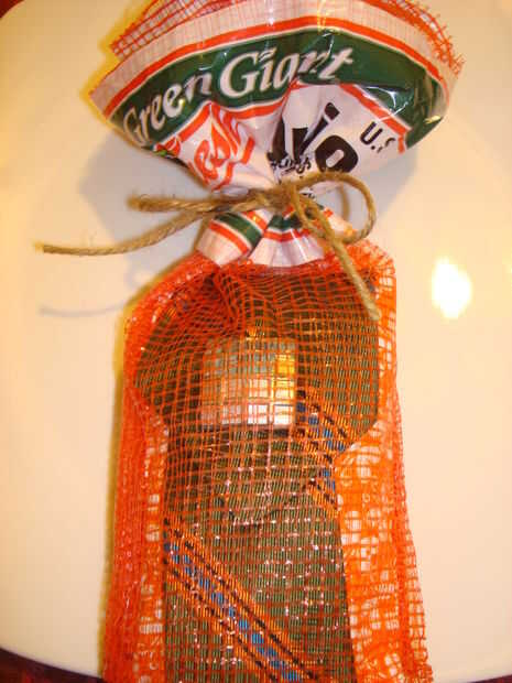 me encanta bolsas de cebolla para la elaboración de!  Me divierto mucho más creando envoltura de artículos desechables que comprar en la tienda.  Cada creación tiene su propio estilo único.  La Web de Instructables me ha retado a reciclar.  Yo no he guardado siempre empaquetado de las cosas que he comprado durante años hasta que entré en este sitio.  Siempre miro algo de cerca para ver si se puede hacer en algo bonito y útil.  De hecho pondré algo aparte saber el plan de futuro para él y luego desaparecerá.  Mi esposo por supuesto no se dio cuenta que tenía planes especiales para el elemento.  Aquí es cómo convertí un bolso de la cebolla para el embalaje de regalo.