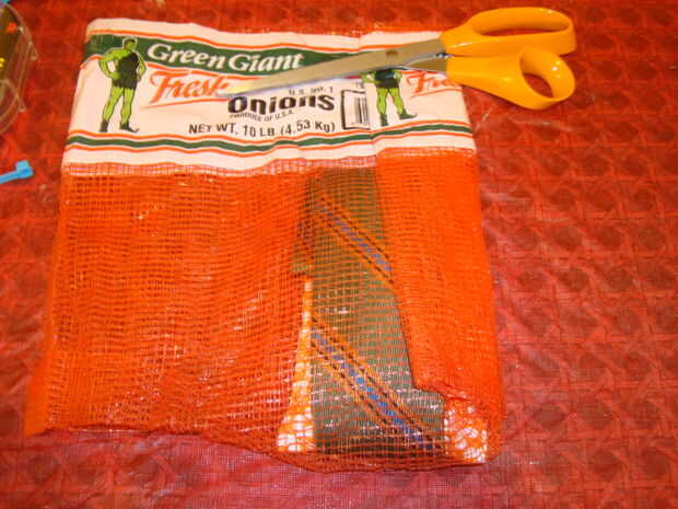 Hacer una esponja de la maceta en una bolsa de cebolla