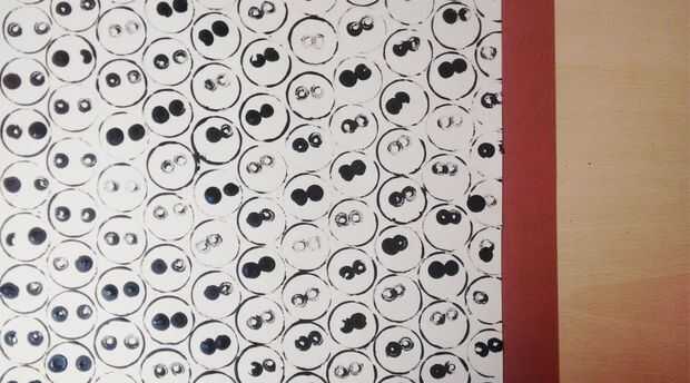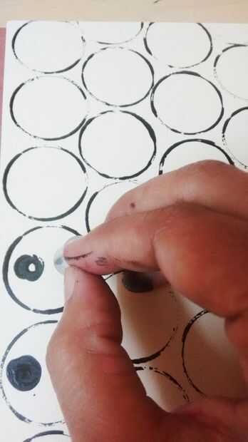 Tomar dos impresiones de esta dentro de cada círculo. Mi tapa tenía un pequeño guión en él así que me puse unos globos oculares. Pasa nada si no obtiene también.