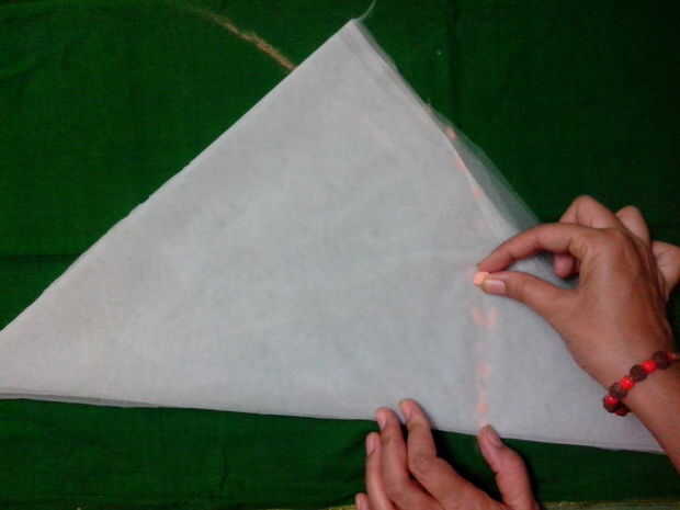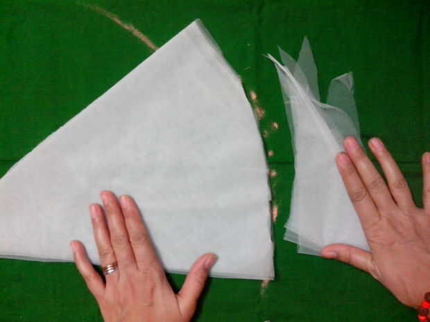 Ahora que queremos hacer un círculo de la pieza rectangular. 1. Tome una pluma de tiza y marque una curva como se muestra. 2. corte a lo largo de la curva para conseguir una gorra como figura.