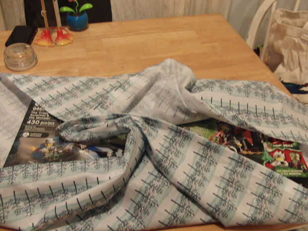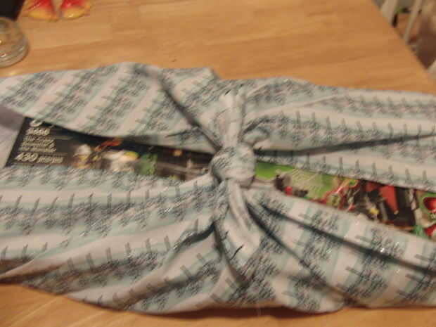 Para envolver una caja, poner la caja sobre la tela de modo que su centrado con el eje largo entre dos esquinas.