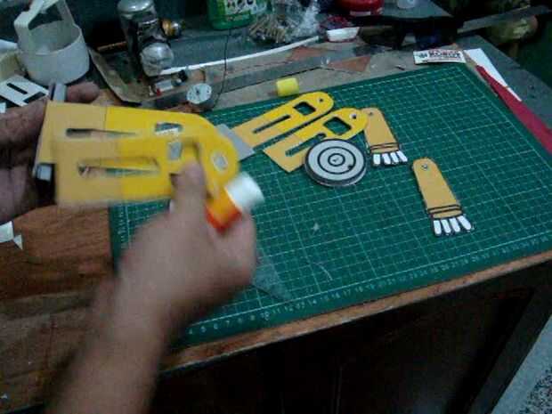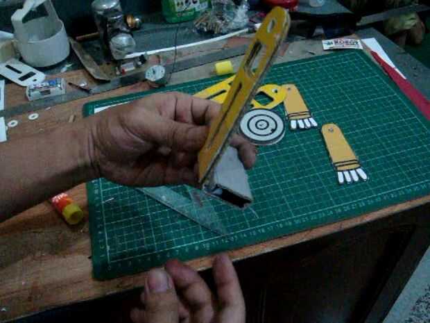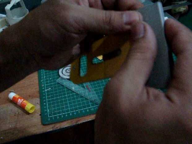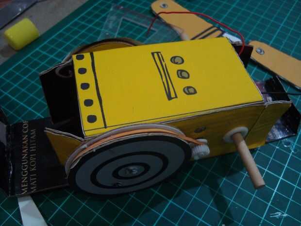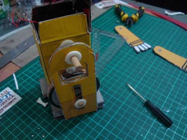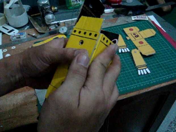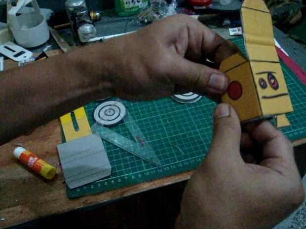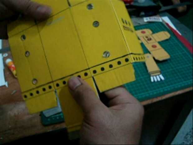 doble en las líneas existentes en la imagen, la sección del cuerpo de la forma en plazas como la cabeza. también en el doblez lejos, doblar de que la parte inferior del pie se encuentra en el robot, después de la parte inferior doblado pegar en dos capas de cartón sobre los pies, el pegamento en la conexión de papel. para hacer dos piezas de las ruedas de las ruedas grandes y una pequeña rueda paso (imagen del círculo amarillo) pasta la rueda pequeña para las ruedas grandes iguala los orificios de la rueda y luego superponer el ya las ruedas grandes, así que hay tres capas y capas de media rueda es un pequeño wheel.look en el cuadro de skema.