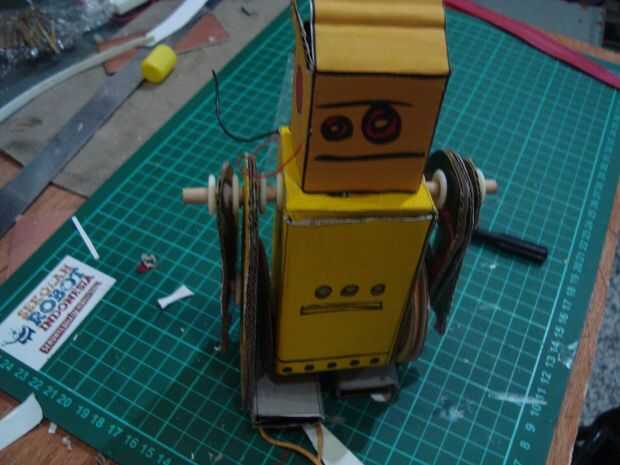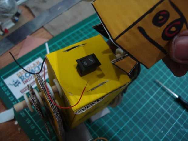 Conecte los cables del motor en/off swich y la batería, ponga el interruptor en la cabeza y la batería la parte posterior de la robot.now adjuntar la prueba y venció nuevo, deslice el interruptor si la pierna de trabajo se hace. el último par de cabezas y permitir que el interruptor se encuentra en la cabeza del robot. y ahora es el momento que terminamos trabajo de robot en acción.