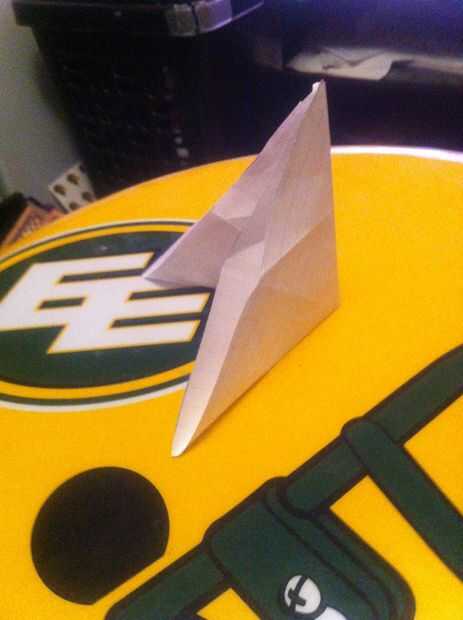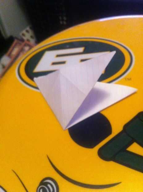 Tomar su papel y doblez así que tiene un triángulo largo el pliegue por la mitad dejar doblado lo suficiente por lo que estará