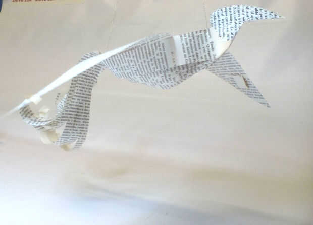 Diseñé este pájaro móvil como una decoración de la boda. Y se vería bonita como uno, particularmente en una boda temática del libro. Pero creo que se vería genial como decoración para el hogar también! Y por supuesto, no tienes que utilizar el libro de papel, puede utilizar cualquiera que te guste. Mapa páginas sería grande, o con motivos de papel... todo lo que quieras usar! La cola de ella me recuerda un poco de un ave fénix. Si tuviera un libro de Harry Potter dañado podría usar esas páginas para él, pero no fue realmente pensado como un ave fénix originalmente, es simplemente cómo resultó!