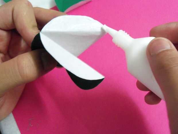 • Tomar dos piezas y una aleta del pegamento y Únete a la otra aleta. Asegúrese de que las aletas coinciden entre sí.