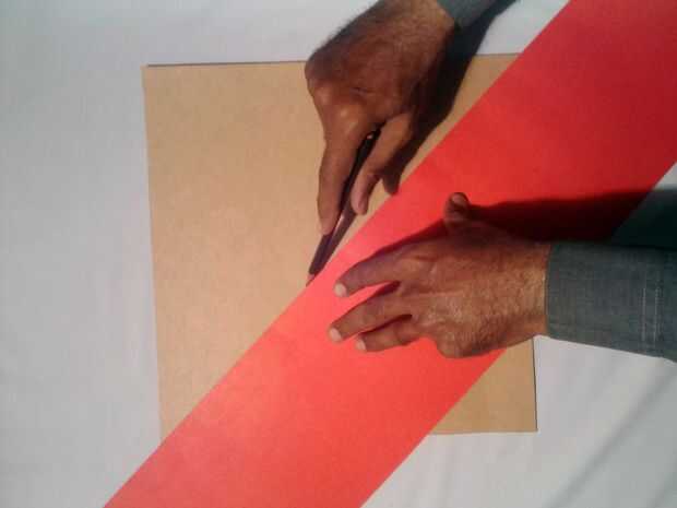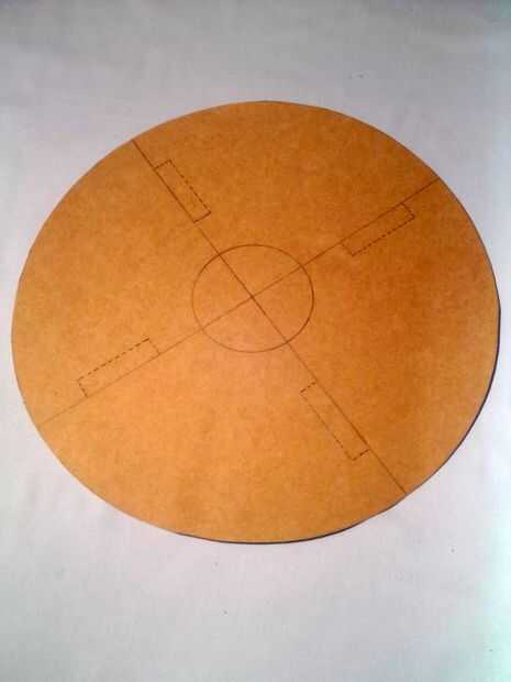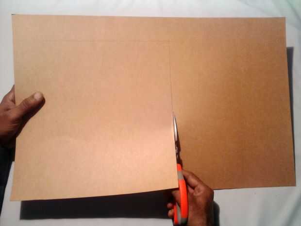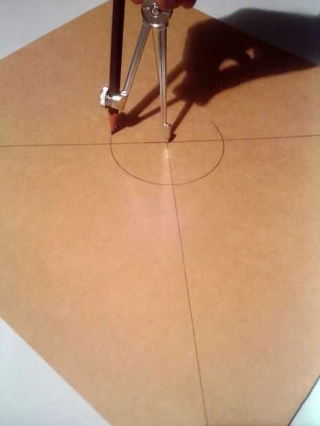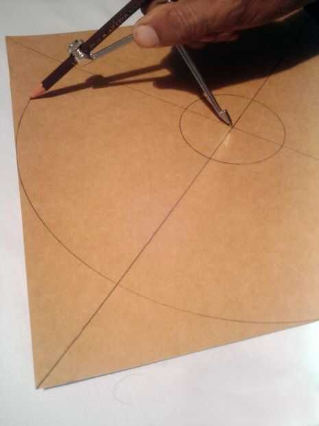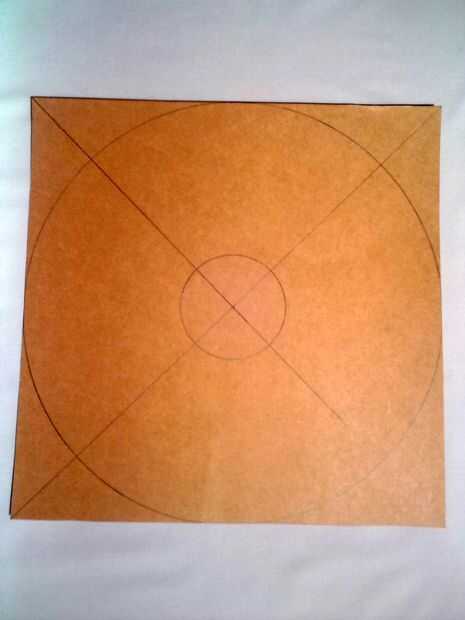 Cortar un cuadrado de 12 en X 12 en a partir de lámina de cartón. Dibujar diagonales a él como se muestra. Ahora tienes el centro.