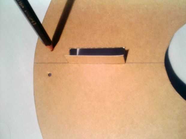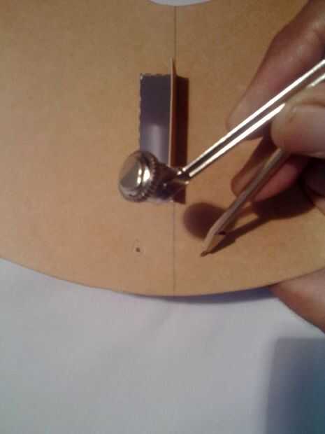 Hacer dos agujeros de la cadena colgar el reloj en la pared. Hacer estos agujeros en los lados de cualquiera de las líneas de cuatro lápiz. Supongamos que esta línea está en posición de 12:00. Fijar la cuerda como se muestra.