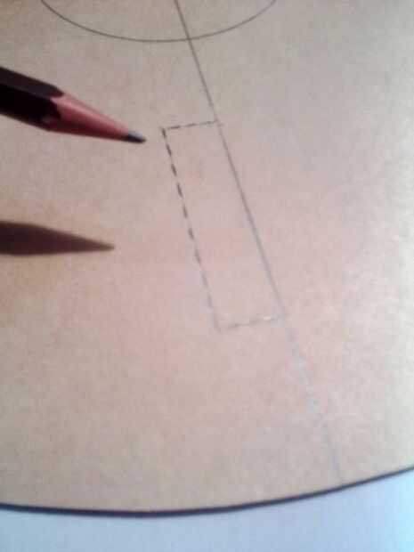 Dibujar rectángulos de 4 en cada una de las 4 líneas de lápiz, cerca de 1 pulgada lejos el centro del círculo, 2 pulgadas de largo y media pulgada de ancho. (véase los cuadros)