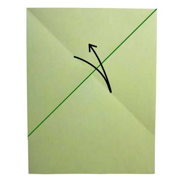 Repita el paso 1 en el lado opuesto. Doblar la hoja de papel diagonalmente desde la parte superior izquierda a lo largo de la línea de doblez para cubrir el borde derecho de la hoja de papel. Luego despliegue el papel en su posición original.
