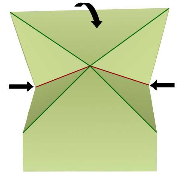 Doblar los lados izquierdo y derecho de la hoja de papel hacia arriba y hacia los demás. Al mismo tiempo doble el borde superior del papel hacia abajo, de modo que forma un triángulo como se muestra en el paso 7. Pasos 4-7 ayudará a guiarlo a través de este difícil doblar.