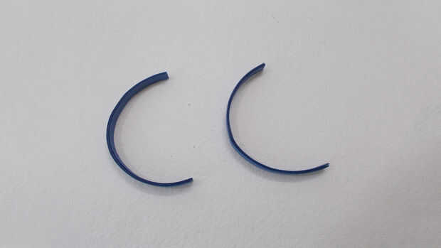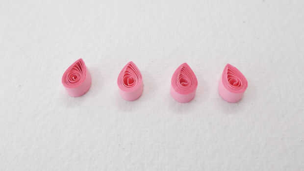 Construir el diseño de los pendientes por tomar un color rosado que tira de quilling y cortarlas en mitades.