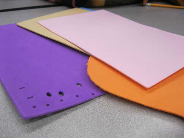 Quise Brazales de cuero, pero no quiero pagar precios de sujeción de cuero. Espuma de artesanía es una solución asequible.Suministros• Arte de la espuma de 12 "x 18" y 1/16" espesor• Interconexión• Mancha de madera• Barniz• Ojales, 1/4"