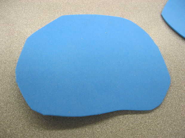 -Primero toma una hoja de papel de la espuma azul y cortar un trozo circular de papel. Este será el cuerpo de su elefante.