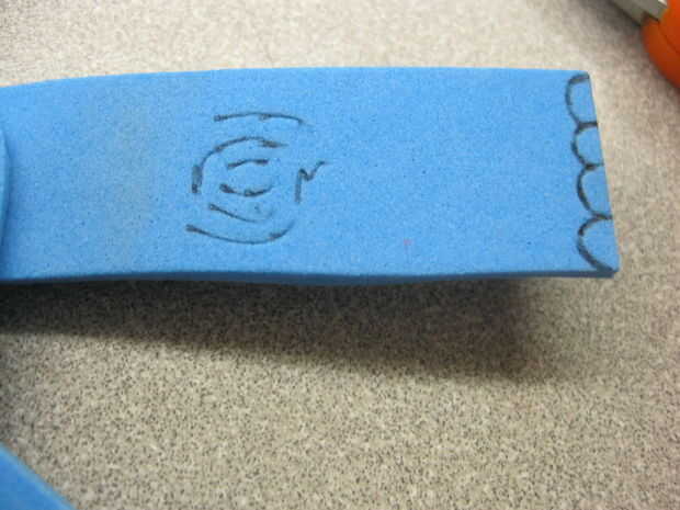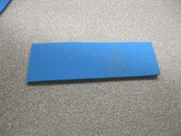 - En primer lugar cortar formas rectangulares utilizando el papel de la espuma azul, hacer esto cuatro veces.