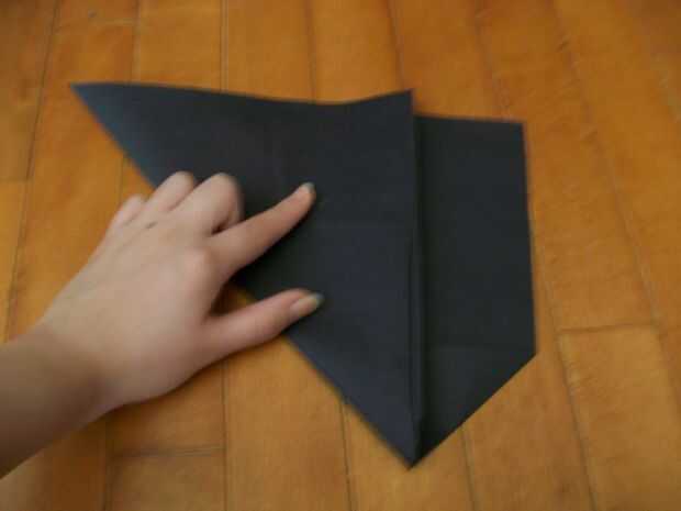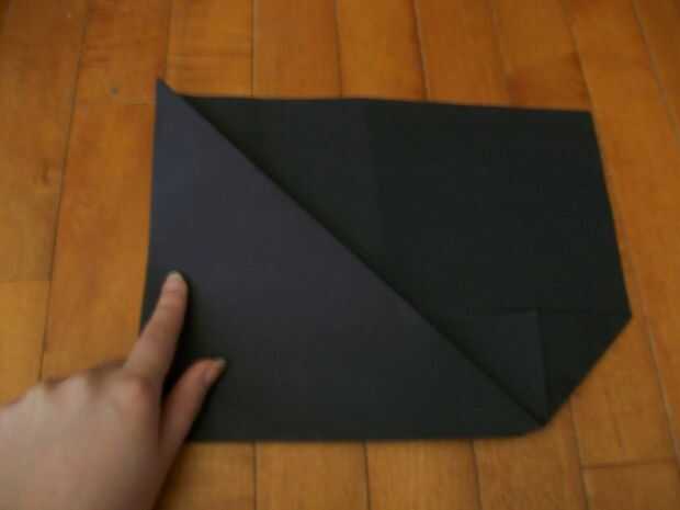 debe doblar a lo largo de la línea diagonal (un como \) y luego reunirse con la parte superior uniformemente.