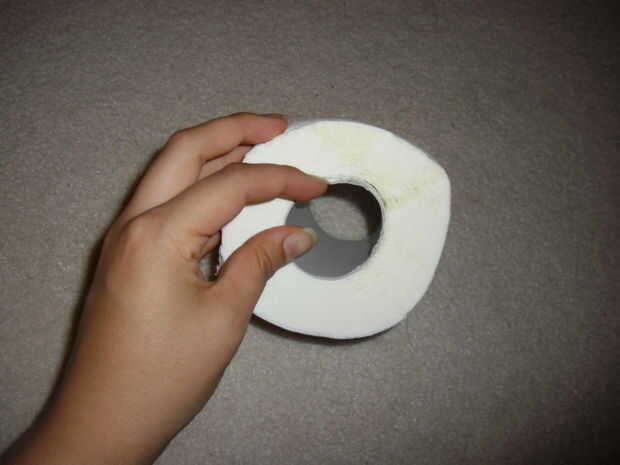 hice una de estas, ilustrado en la foto principal para un proyecto de arte humorístico en la Universidad.  Ahora que tengo una casa con ningún sostenedor de papel higiénico en el baño, pensé por qué no Cave hacia fuera y volver a instalarlo.Aquí está