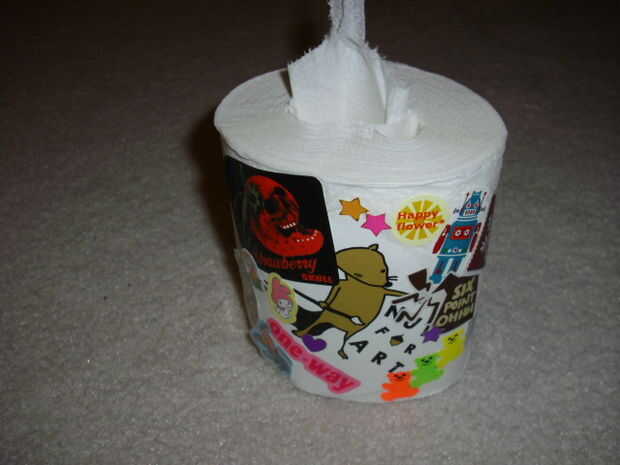 hice una de estas, ilustrado en la foto principal para un proyecto de arte humorístico en la Universidad. Ahora que tengo una casa con ningún sostenedor de papel higiénico en el baño, pensé por qué no Cave hacia fuera y volver a instalarlo.Aquí está