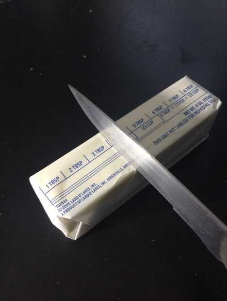Utilizando el cuchillo, cortar la mantequilla a una longitud de 5 cdas.