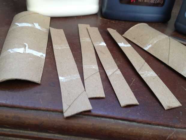Instrucciones para anillos de servilleta de papel de tocador DIY1. en primer lugar, cortar el rollo de papel higiénico en varios tubos más pequeños. Minas fueron aproximadamente 1 1/2 pulgadas de ancho, pero puede hacerlos como todo o flaco como quie