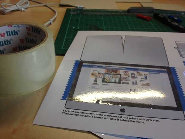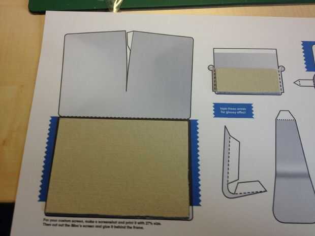 Ahora usted puede comenzar con el trabajo de fabricación, cortar la pantalla, pegar el cartón detrás del frente para estabilizarlo y pegar la espalda a él. Nadie es perfecto, por lo que no sea 100% de precisión de ajuste. Sólo corregir con pequeñas tijeras.