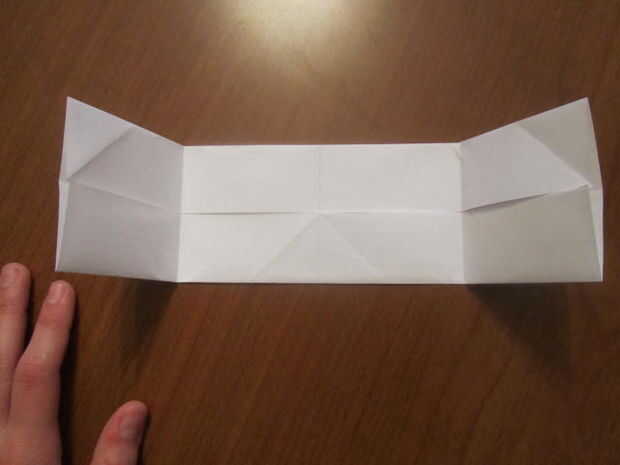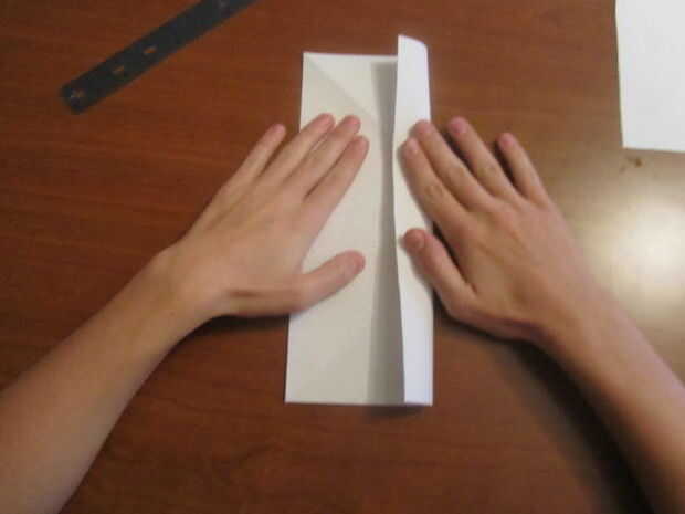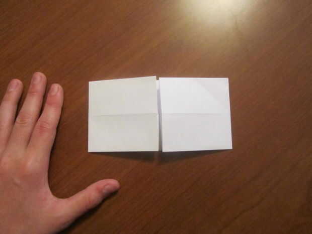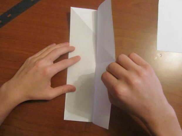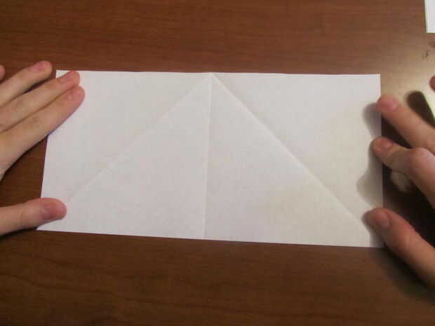 Desdoblar el papel, cortar y doblar por la mitad y luego desdoblar el pliegue usted solo y doble ambos lados para el pliegue en el centro. Ahora dobla el papel en mitad del camino y desplegarlo.