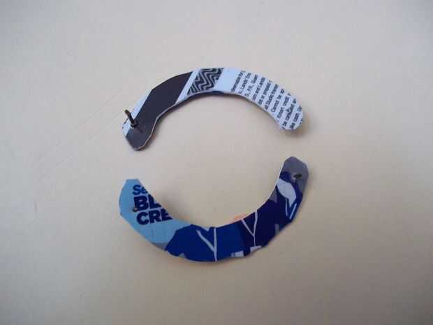 Luego poner las piezas de clip de papel a través de los agujeros que hiciste y use pegamento para fijar la bodega del clip al segmento