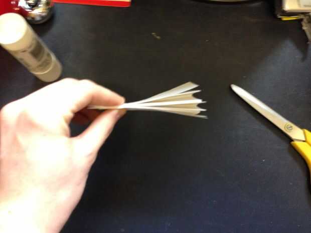 Título lo dice todo realmente - a cortar el papel en tiras de 30mm aproximadamente, cortadas suficientes tiras de modo que cuando están todos apilados y exprimen juntas constituyen aproximadamente 3mm de espesor.