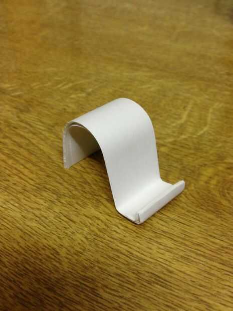 fácil para ipod / iPhone soporte que funciona en la vista vertical u horizontal. Lo mejor de todo, usted puede hacer de cualquier pedazo de papel de cuaderno.(Disclaimer: no soy responsable si usted consigue un papel cortado haciendo de este soporte)