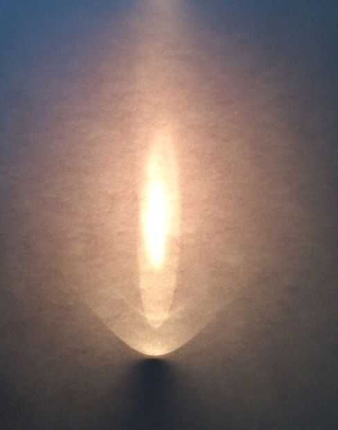 Usando una variedad de fuentes de luz, he probado diferentes papeles para ver las cualidades que podía esperar. Ya que esta lámpara existe en tres dimensiones, no es sólo la luz brilla a través del papel pero todo alrededor de los bordes así.