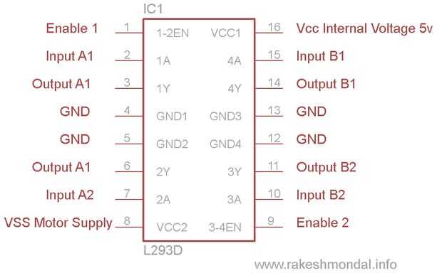 pin 2,7,10,15 para pernos 8,9,10,7 de arduino(inputs) del receptor