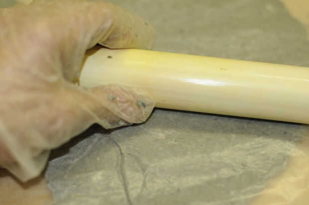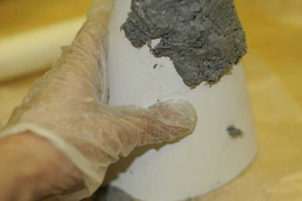 Con guantes de plástico en rollo la CelluClay en láminas delgadas mediante un perno de balanceo y papel de cera en la parte superior. Comienzan estos en la forma de cono, asegurándose de que las capas son bastante delgadas capas.