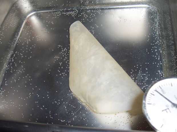 Sacudida de la cabeza del tambor en agua fría y remojar hasta que se convierte en suave y flexible. No hay necesidad para calentar el agua. Tarda unos cinco minutos para que se ablandar (Figura 15).