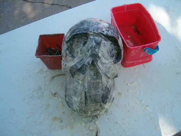 He usado bastantes pequeños pedacitos de papel que no eran buenos para mucho, sumergiéndolas en la pasta y aplicarlas hasta que tenga algo que parece un cráneo, incluso una caricatura uno en!