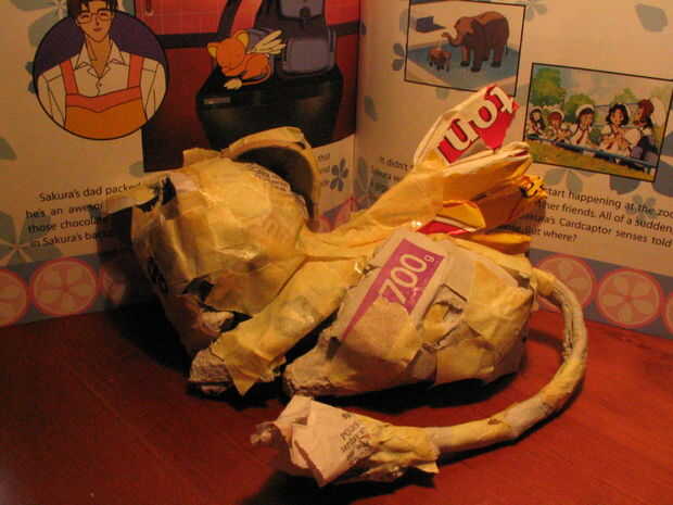 Portarrollos de papel higiénico, cartón de huevos, caja de bolsa de té y periódico fundido junto con cinta adhesiva crean una impresión tridimensional tercera cruda de mi referencia del libro del cuadro. Es triste que se trata de mi solamente recuerdos de la serie de anime.