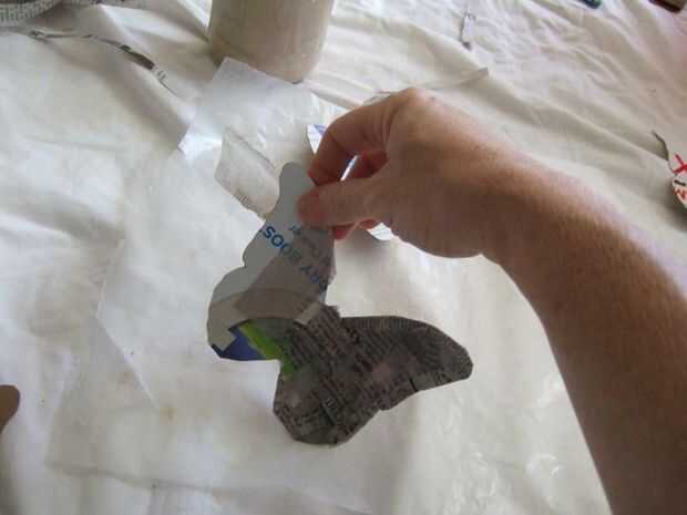 * Repita este paso hasta que su diseño base se cubre con 1 capa de sólido papel-maché, lugar en cartón del huevo (u otro recipiente de poliestireno-waxpaper) para secar, durante la noche si es posible.