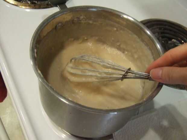 * Batir y revolver constantemente hasta que la mezcla espese.