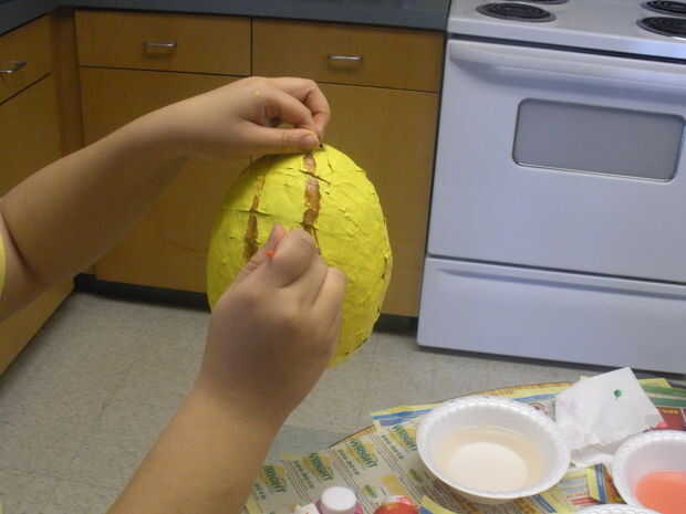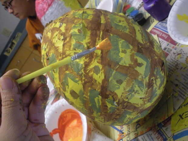 Después de la capa base seca, (utilizando una piña real como inspiración) pinta el papel maché!