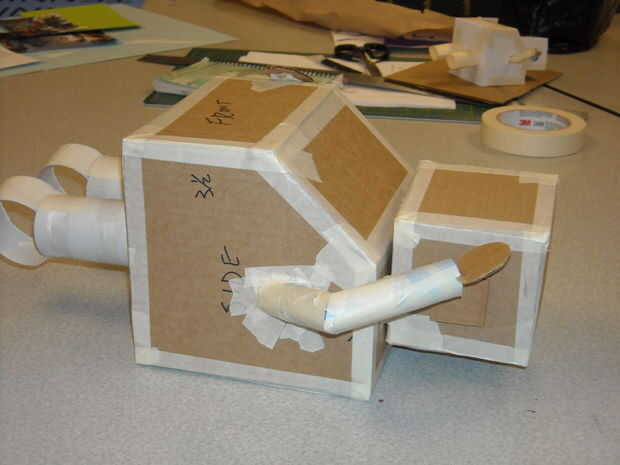 Puede utilizar muchos objetos de diferentes formas. Si haciendo una máscara, globos funcionan bien. Agrupados para arriba papel y cinta adhesiva también funciona bien y permite realizar más de forma gratuita. Utilicé cartón corrugado, tubos de papel higiénico, cartulina y cinta adhesiva para hacer mi formulario. Decidí hacer un robot de instructables. Me refería al Instructables Robot - modelo de papel instructivo escrito por = inteligente = al hacer este diseño. Gracias = inteligente =!