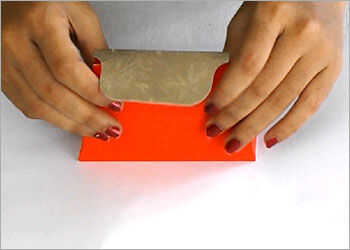 Doblar por la mitad y pegar en el centro del papel, bolso de embrague.