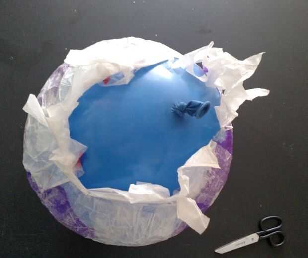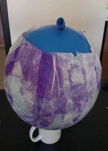 No había previsto el Mod Podge esencialmente había pegado el papel al globo, y como el globo se contrajo se derrumbó la cáscara entera en una implosión del chisporroteo lento!