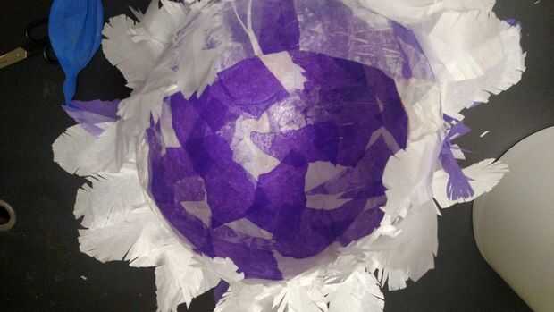 Papel morado con plumas lámpara (7 / 8 paso)