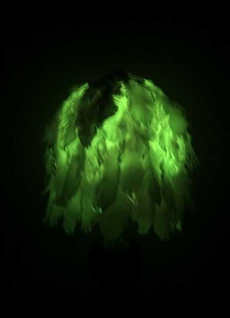 También probé con una bombilla de luz negra y hace el blanco pop a una impresionante cortina de púrpura! (Las fotos no hacen a justicia!)