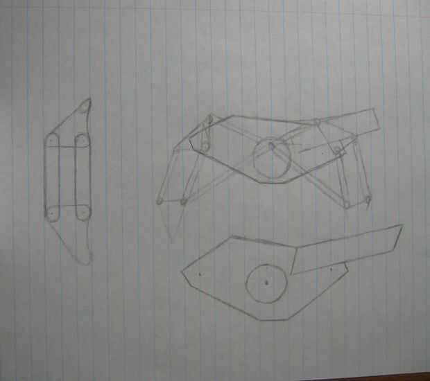 Tél diseño general tomó su forma de un bosquejo áspero que hice. El cuerpo debe asignar suficiente espacio para alojar las baterías y el motor interior, que puede verse en la tercera foto. El extremo posterior del cuerpo sería donde iría el portapilas y la contendría el espacio sobrado en la parte delantera del motor, así como un lugar para un interruptor de encendido colocado en algún lugar en la parte superior.