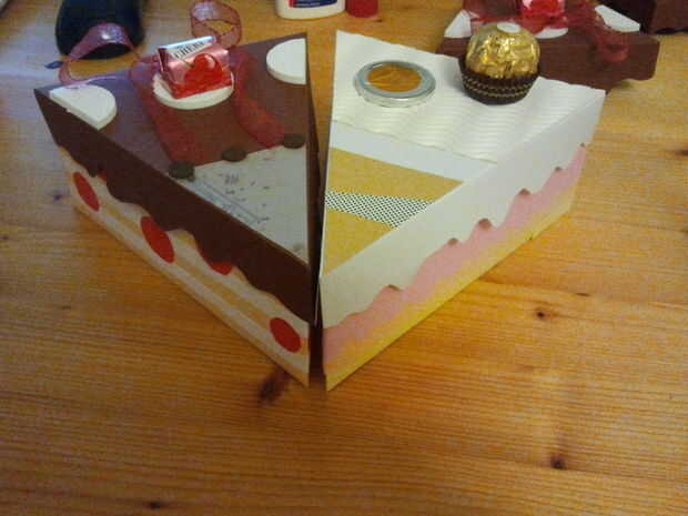 Para la parte superior solo ser creativo. He utilizado fieltro como puntos de crema y chocolate. Tenía banda regalo restos que hubiera también sido bonito como decoración lado.