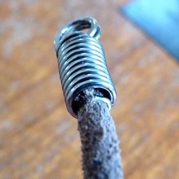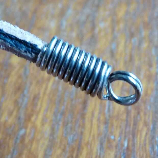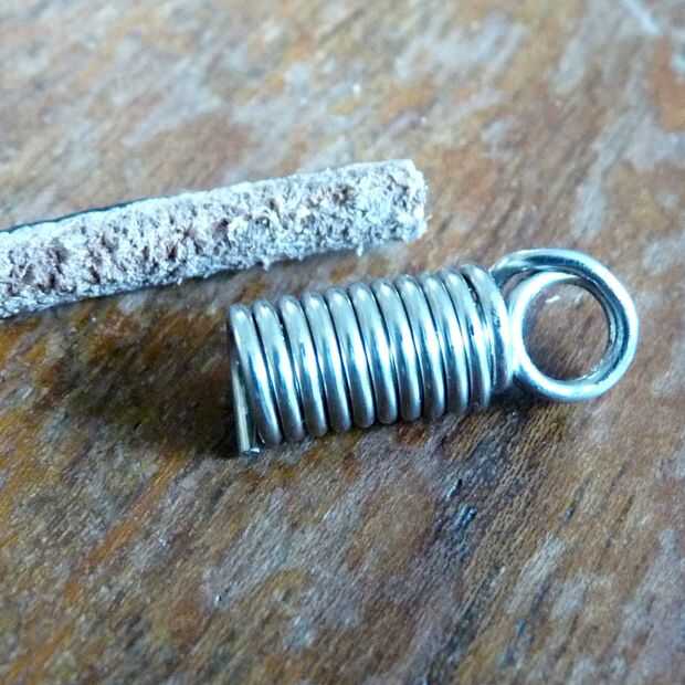 Para terminar el cordón de cuero y se puede utilizar cualquiera de los dos extremos de cable comprado o hacer su propio. Su funcionamiento es que al final de la cuerda de cuero va en un tubo. El cuero se pega ya sea en o el tubo es aplastado y exprimido en la piel. Depende de lo que compra o hace. Hice mi propia prensa extremos de la cuerda (pero eso es para otro tutorial).