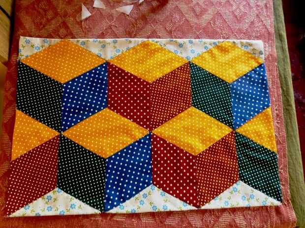 Ahora su papel la pieza diseño está completo. Usted puede utilizarlo como un colgante de pared, una mesa o una funda de almohada. He utilizado esta pieza acolchada para hacer una funda de almohada