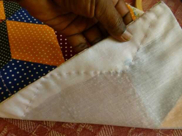 • Mano coser el forro con el tejido a lo largo de todas las juntas